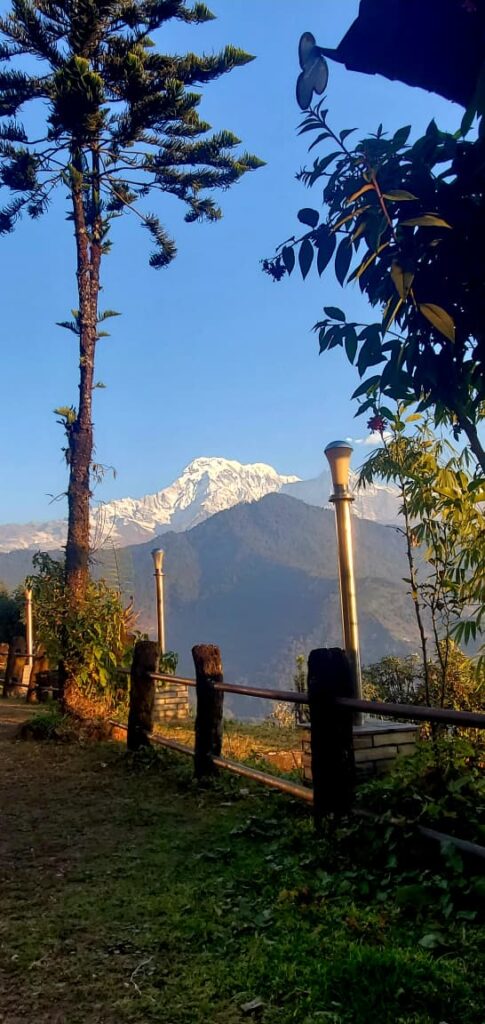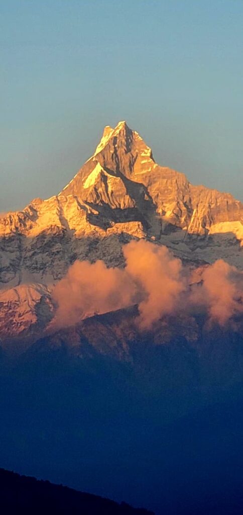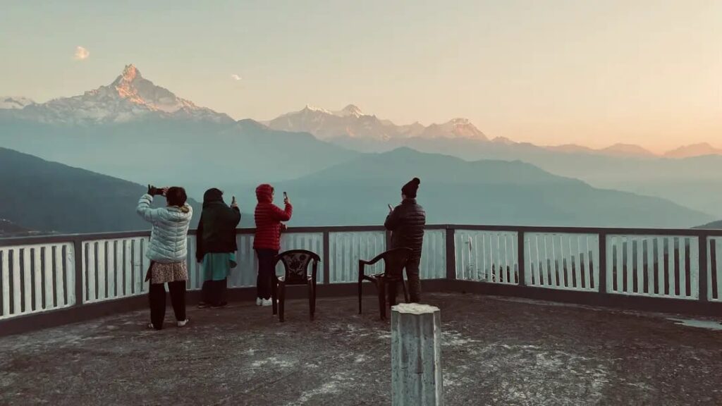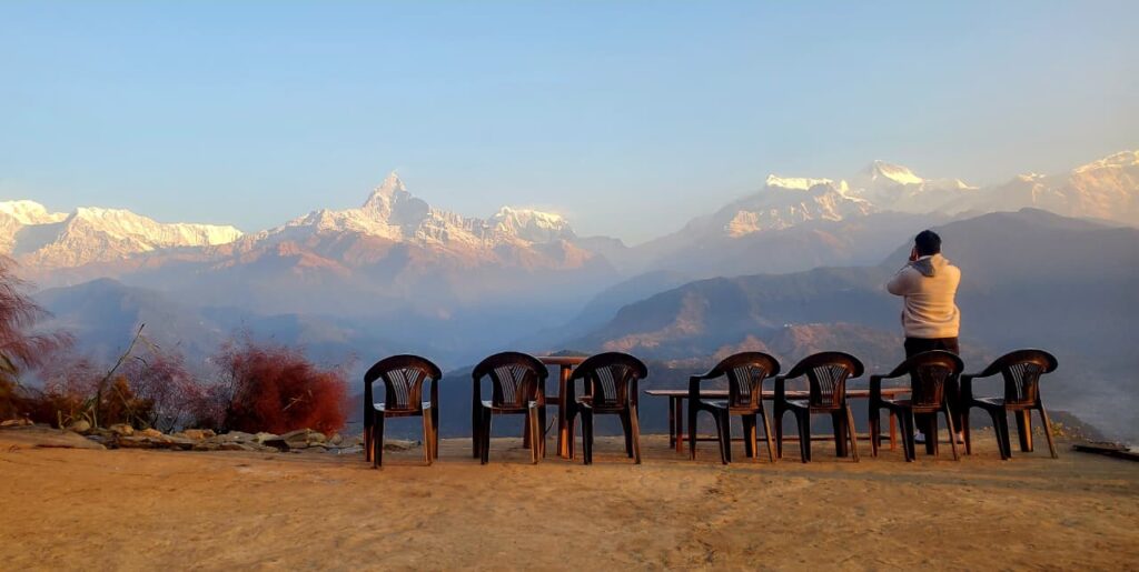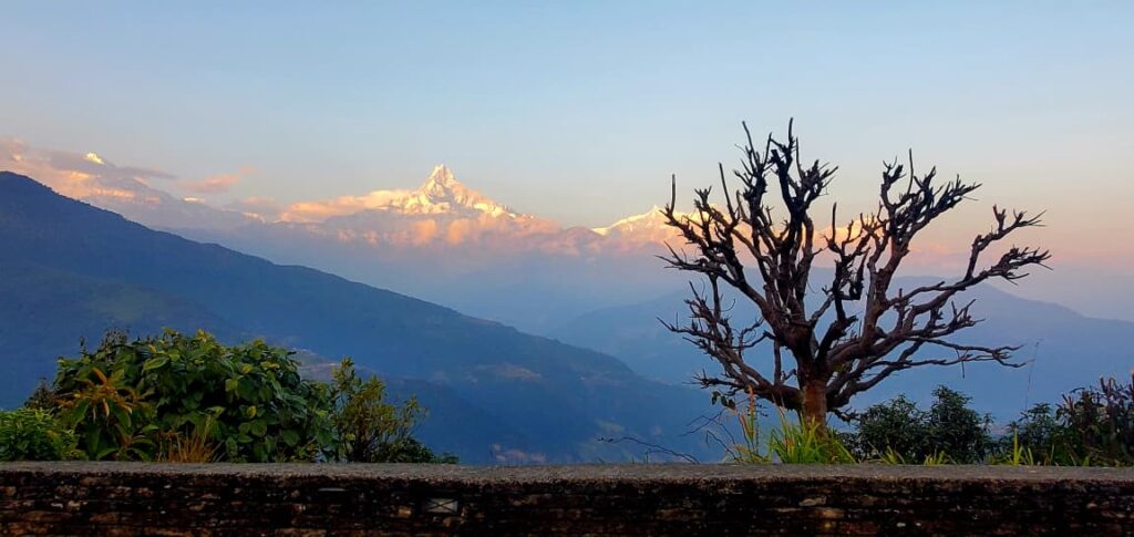I watched the sunrise there with little to no crowds around me. Seeing the first red rays of sunlight shining over the peak of Machhapuchhre was amazing.